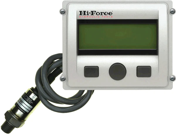 Digital Display Unit (HDD1) - For use with HPT1 transducer to record pressure in applications where remote reading is preferred. Compact size with large LCD screen. Displays readings in psi or bar. Features include minimum and maximum value, average value, tare offset, and reset. Complete with worldwide power supply unit. IP65 enclosure rating. For use with 4-20 mA pressure transducer.