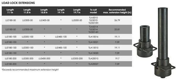 Load lock extensions can only be used one at a time, and optionally in conjunction with slip lock extensions.